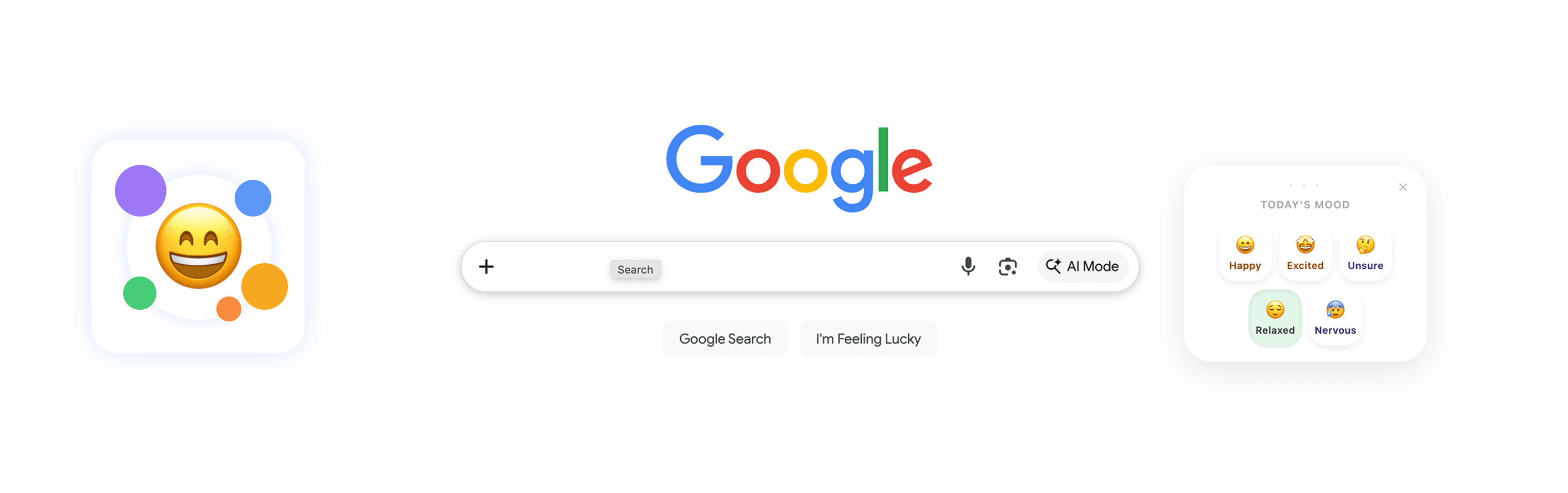 Mood Burst is a Chrome extension that adds emoji animations to Google Search. When you press Enter in the search bar, emoji matching your selected daily mood burst out from the search box.