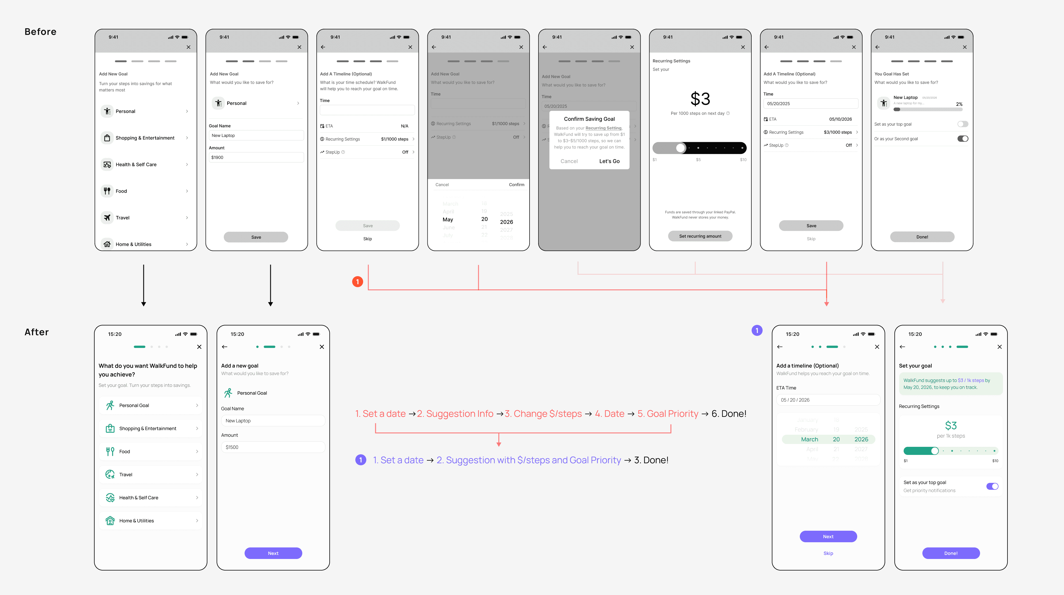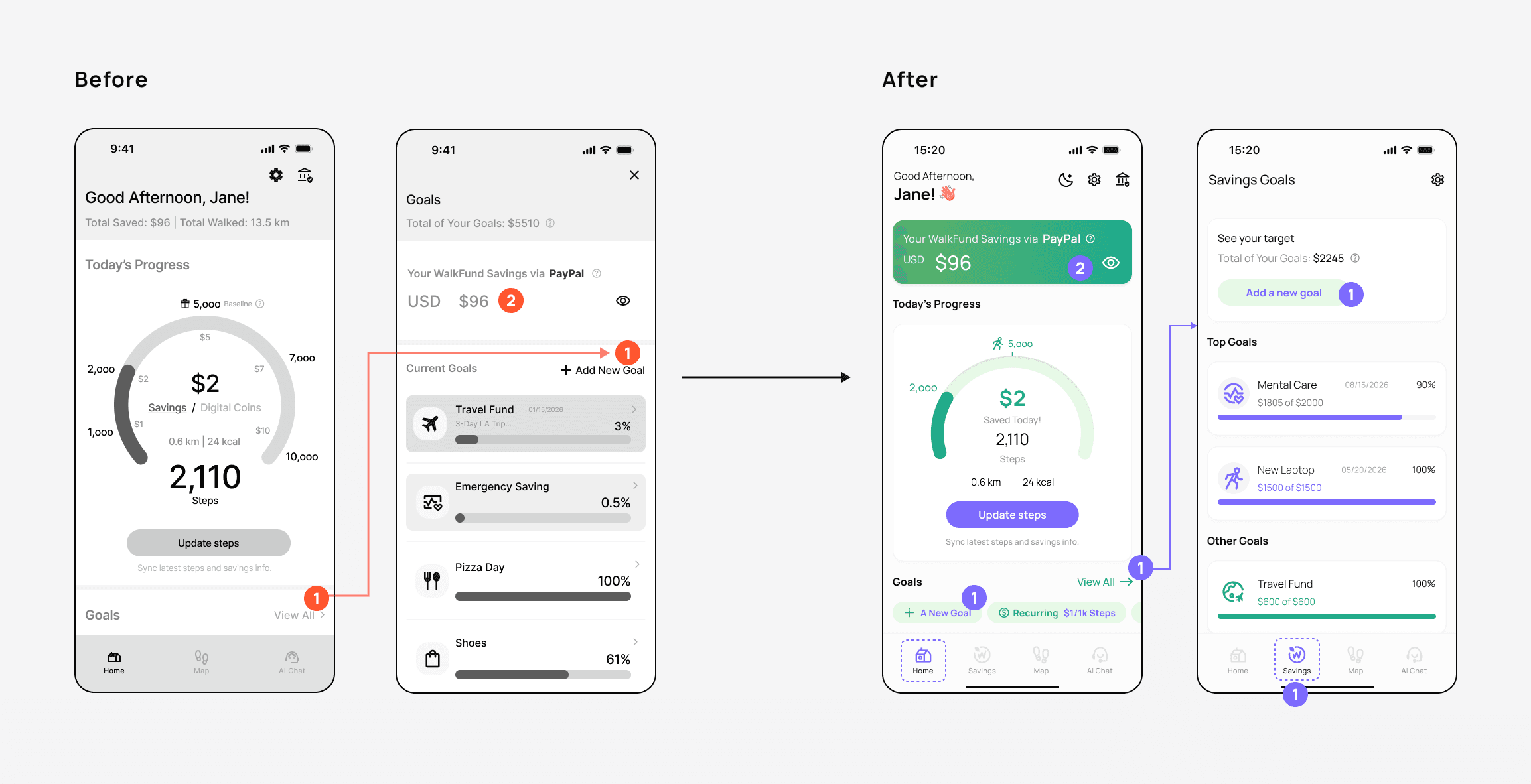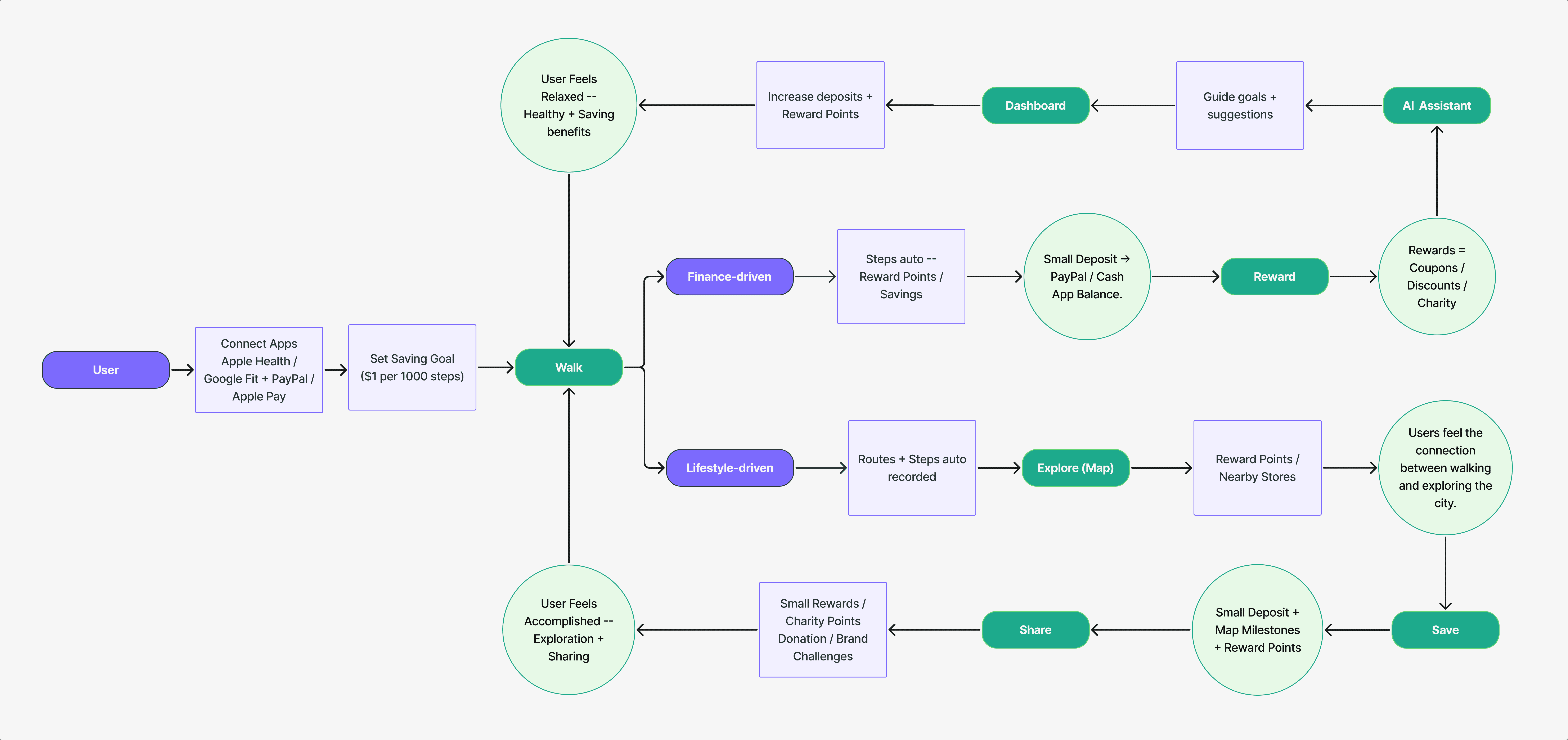A saving product that turns daily steps into automatic savings tied to personal goals.