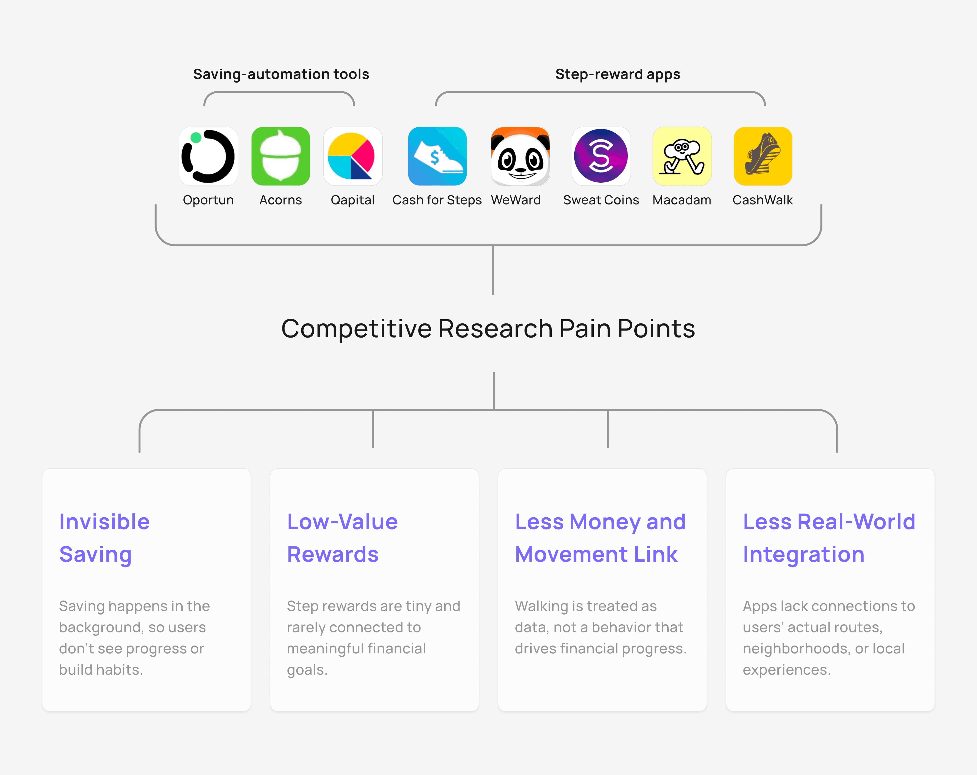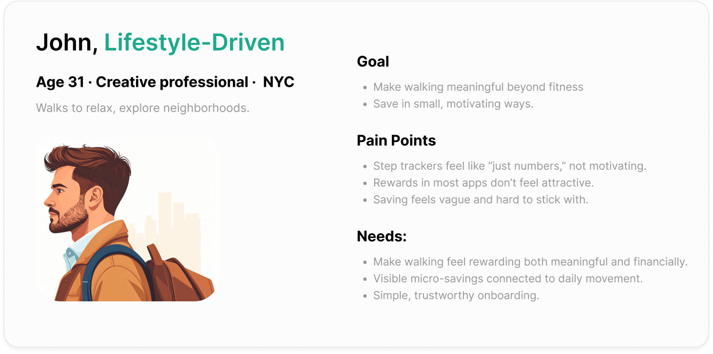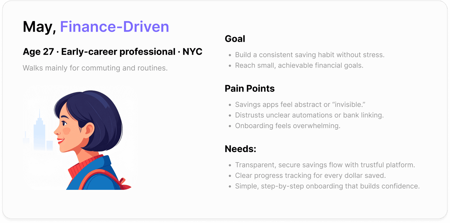 People want to save money, but most tools don’t fit into everyday life. Saving apps take effort, and step apps rarely turn movement into real savings.