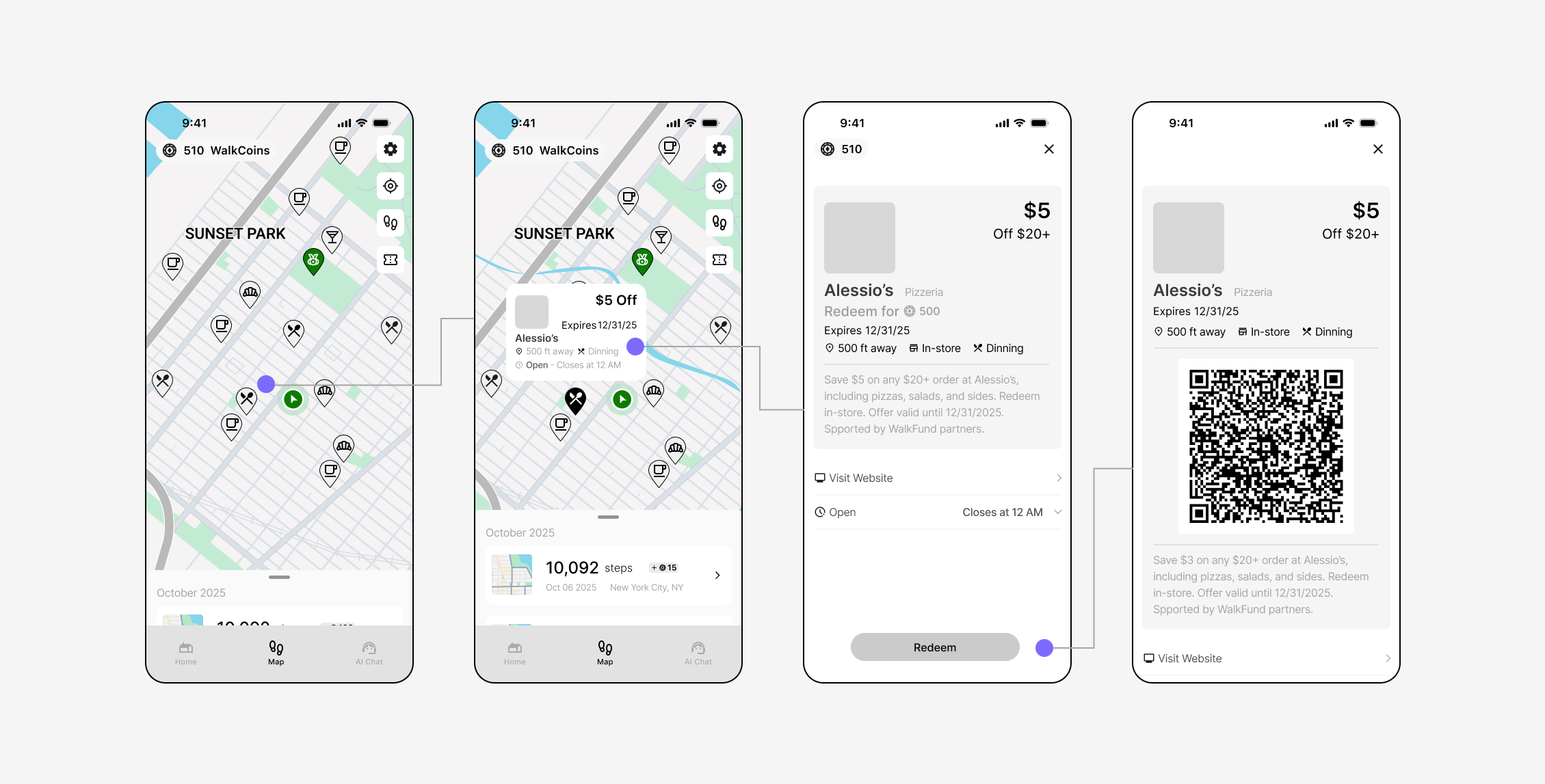 WalkFund offers local rewards that encourage users to walk and explore new neighborhoods.