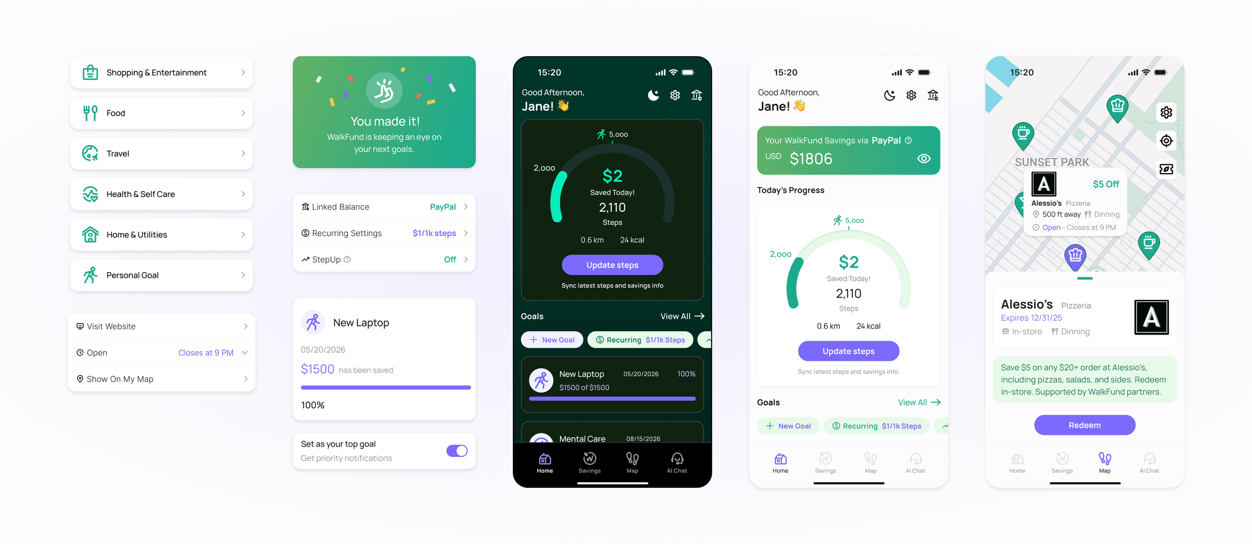 Walking triggers micro-savings, trusted payment flows keep users confident, and rewards keep them motivated.