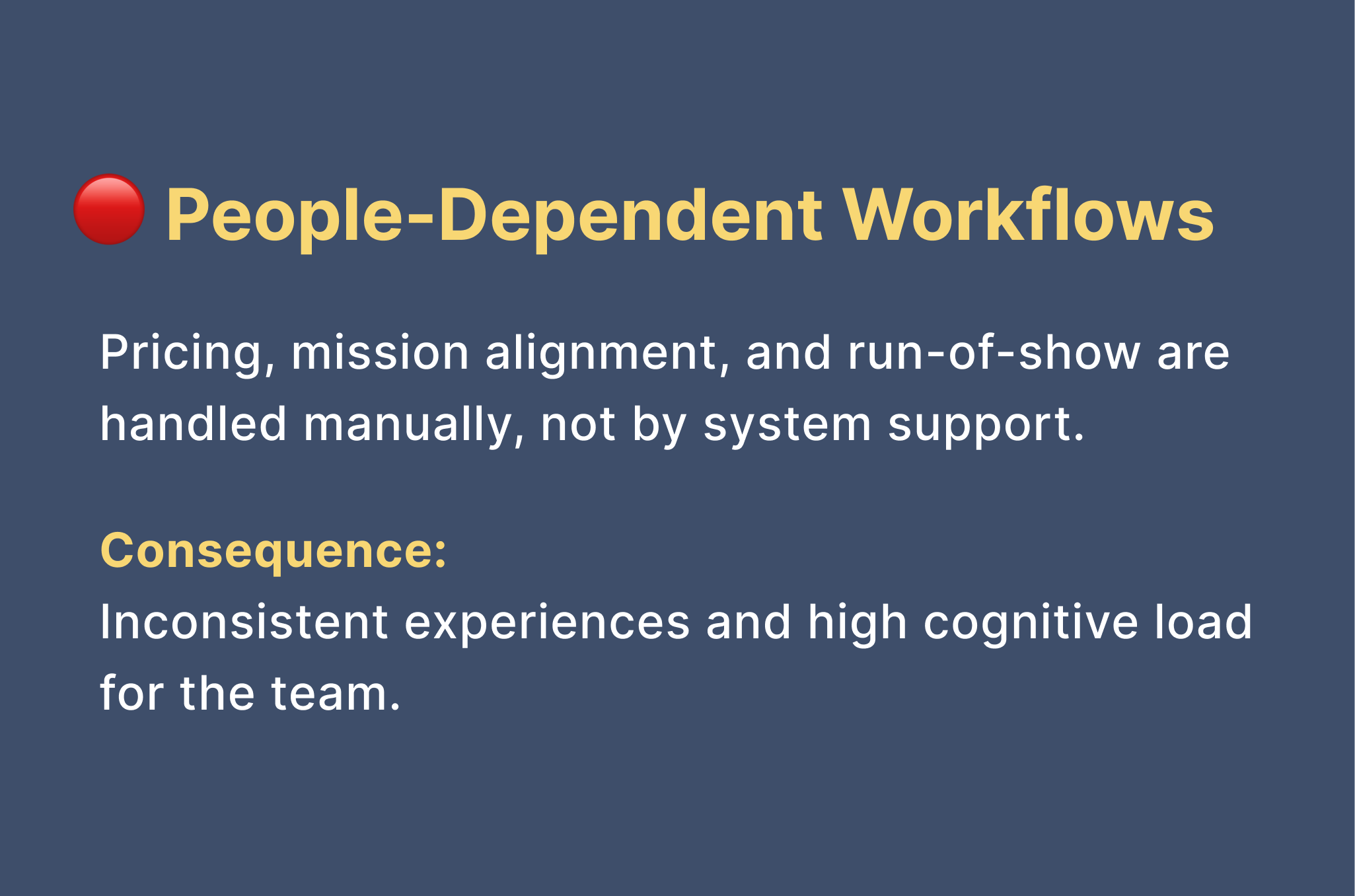 In a 1.5-hour conversation, we walked through his end-to-end workflow to understand what works well and where friction occurs (Comparative Approach).