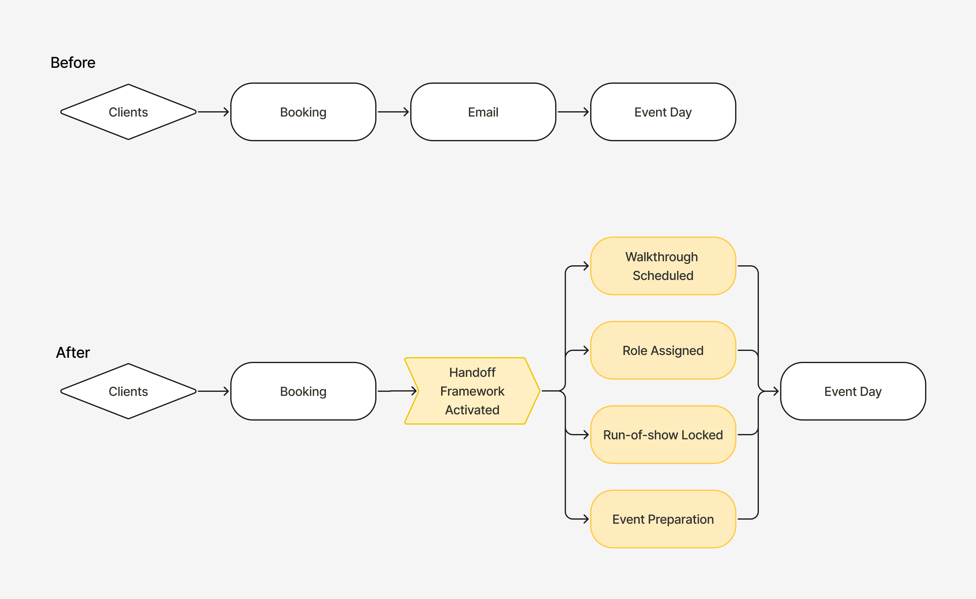 Defined a structured transition between booking and event execution — standardized walkthrough + run-of-show documentation.