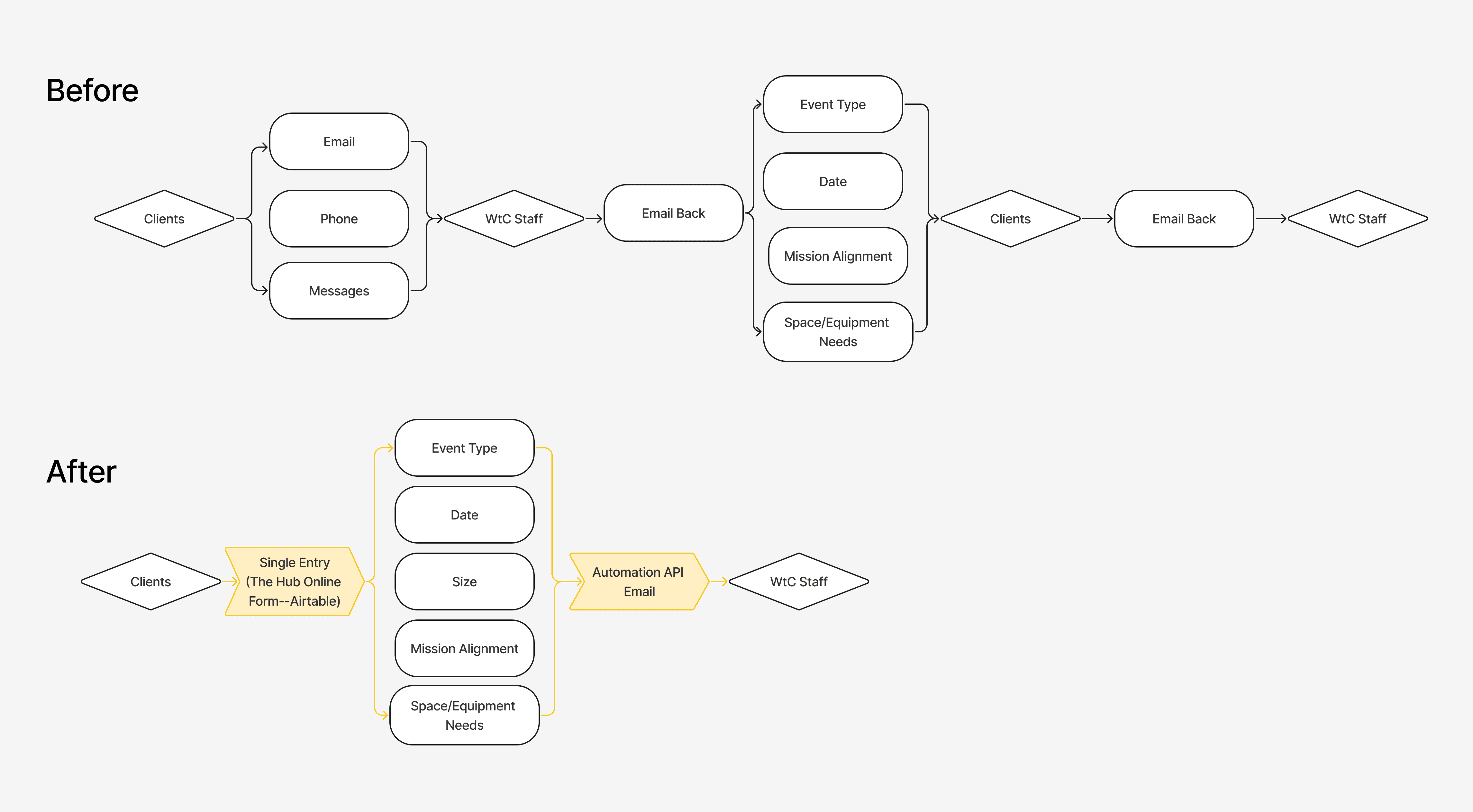 Replaced scattered email threads with a structured intake form connected to Airtable.